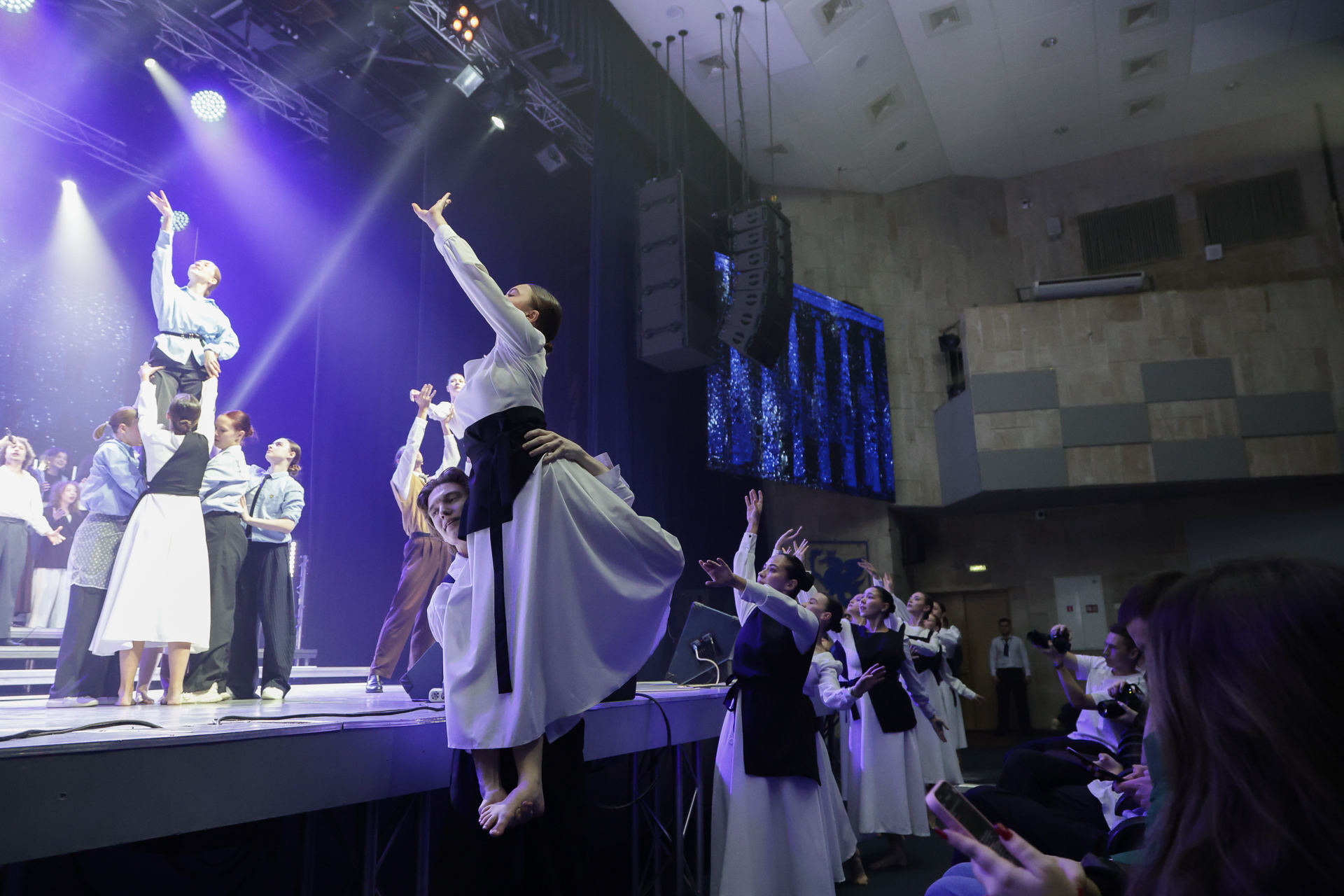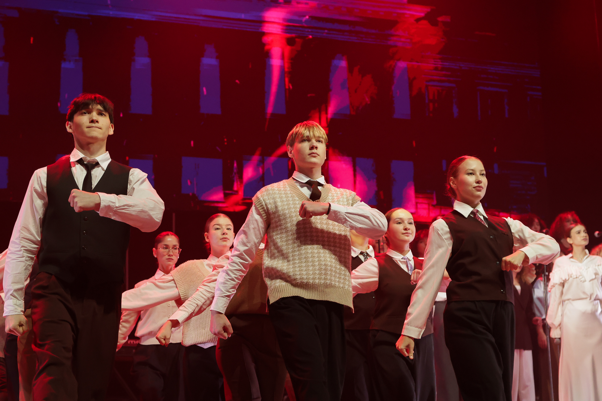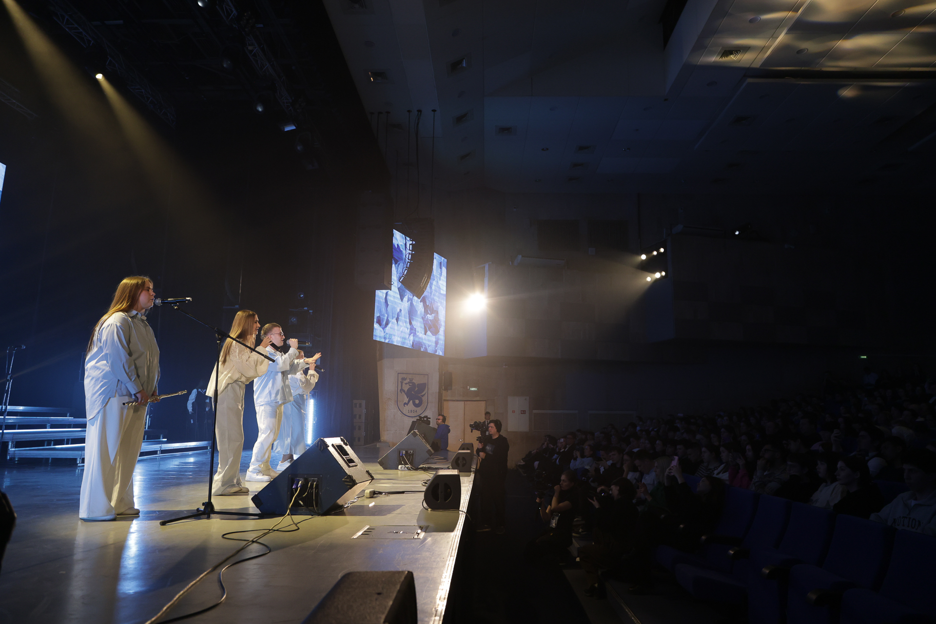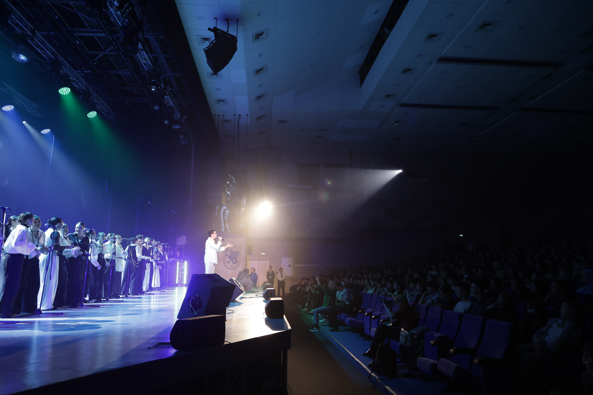 Особое место в программе заняла память о героях Великой Отечественной войны. На экране разворачивалась история о том, как вуз в годы войны стал важным научным, образовательным и гуманитарным центром, а на сцене артисты представляли короткие монологи, основанные на воспоминаниях очевидцев тех лет. Следующий блок рассказал о международном сотрудничестве КФУ – от первых иностранных исследователей и путешественников до современных студентов, приехавших учиться в Казань со всего мира. Заключительная часть концерта была посвящена людям. Здесь раскрылась мысль о том, что Казанский университет – это не только стены, архивы и традиции, но прежде всего люди, создающие уникальную атмосферу.