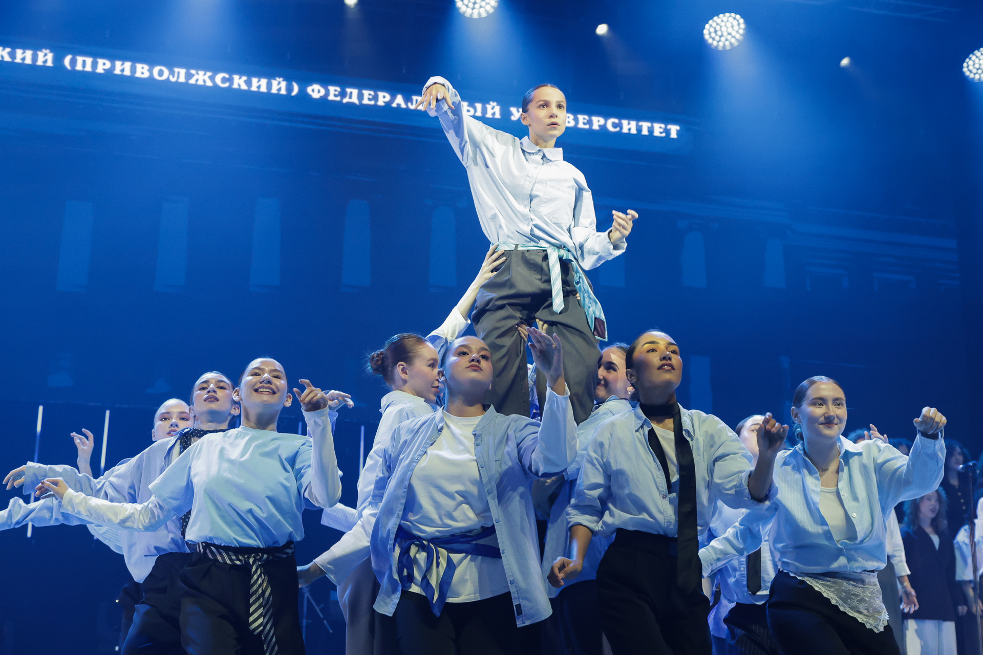 Концерт открылся вокально-хореографической постановкой «История Казанского университета». На сцене объединились вокальный ансамбль КФУ, хор Института международных отношений, истории и востоковедения, танцевальные коллективы «Маршмеллоу», The Station of svet, UVillDance и Beholders. Пластика, вокал и видеоряд воссоздали атмосферу рождения вуза, заложив тон всей дальнейшей программы. Хоровая капелла им. Л. Усцова исполнила Гимн Российской Федерации и гимн Казанского федерального университета.
