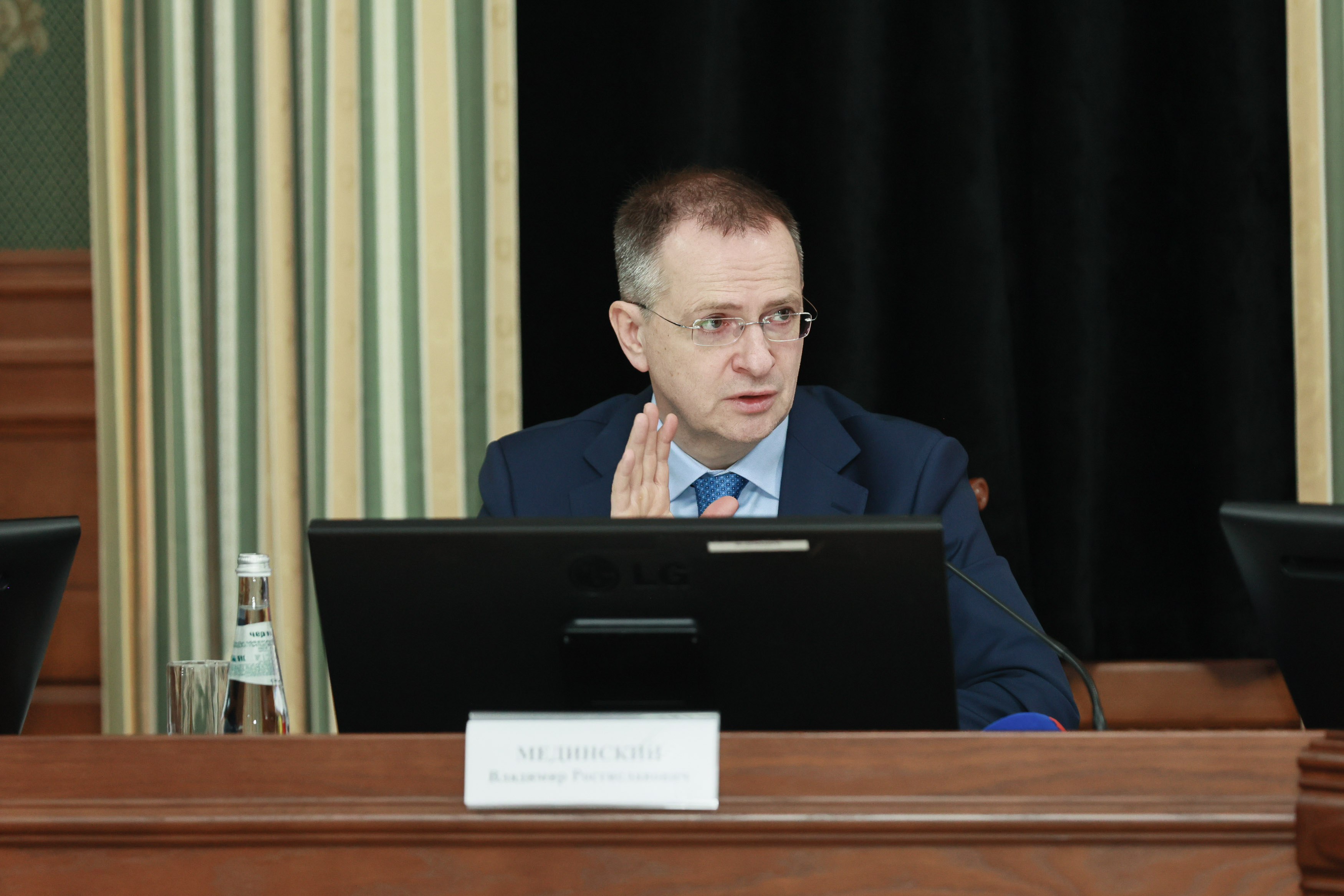 Встречу провел помощник Президента России и по совместительству председатель Российского военно-исторического общества Владимир Мединский.