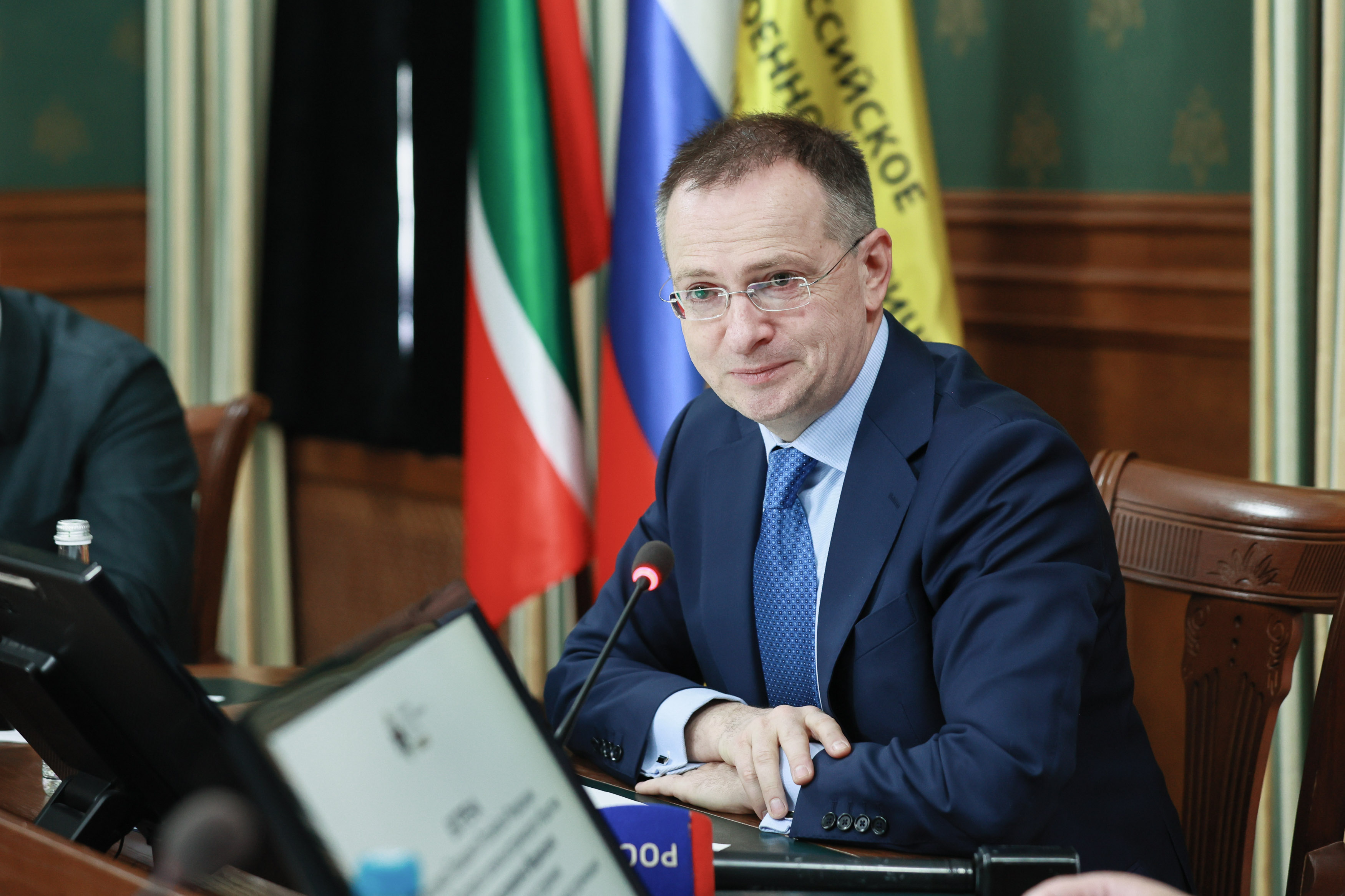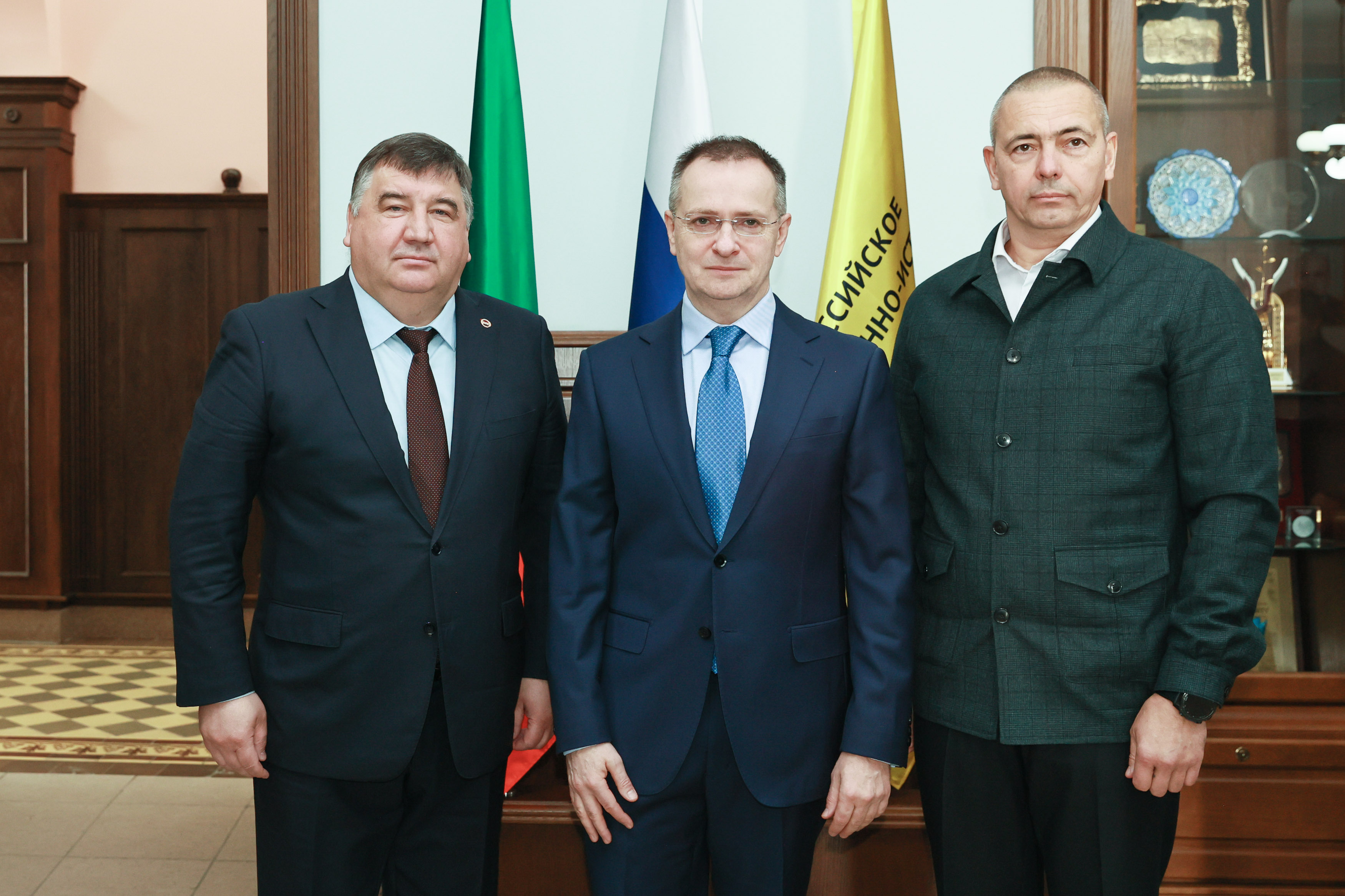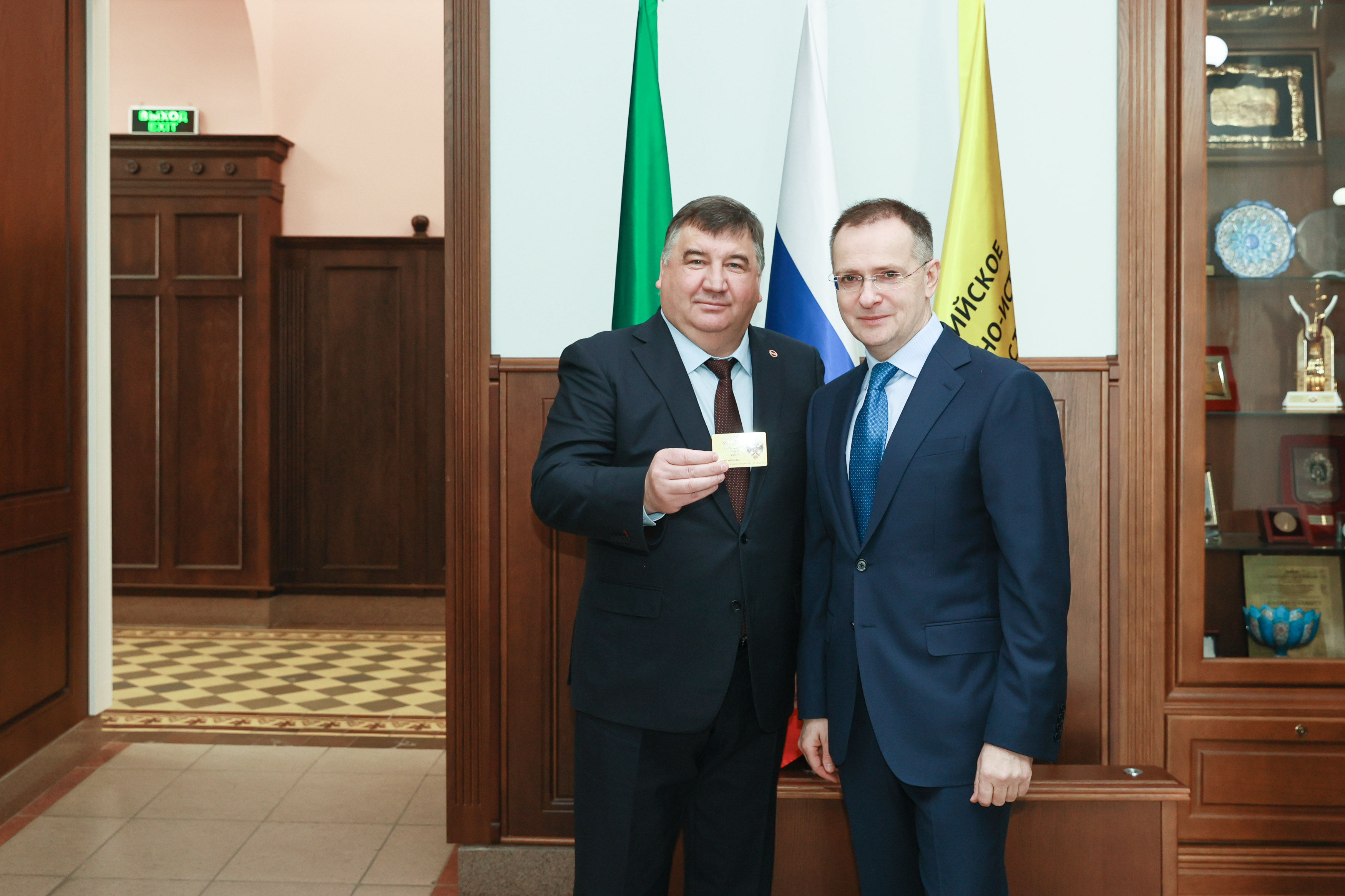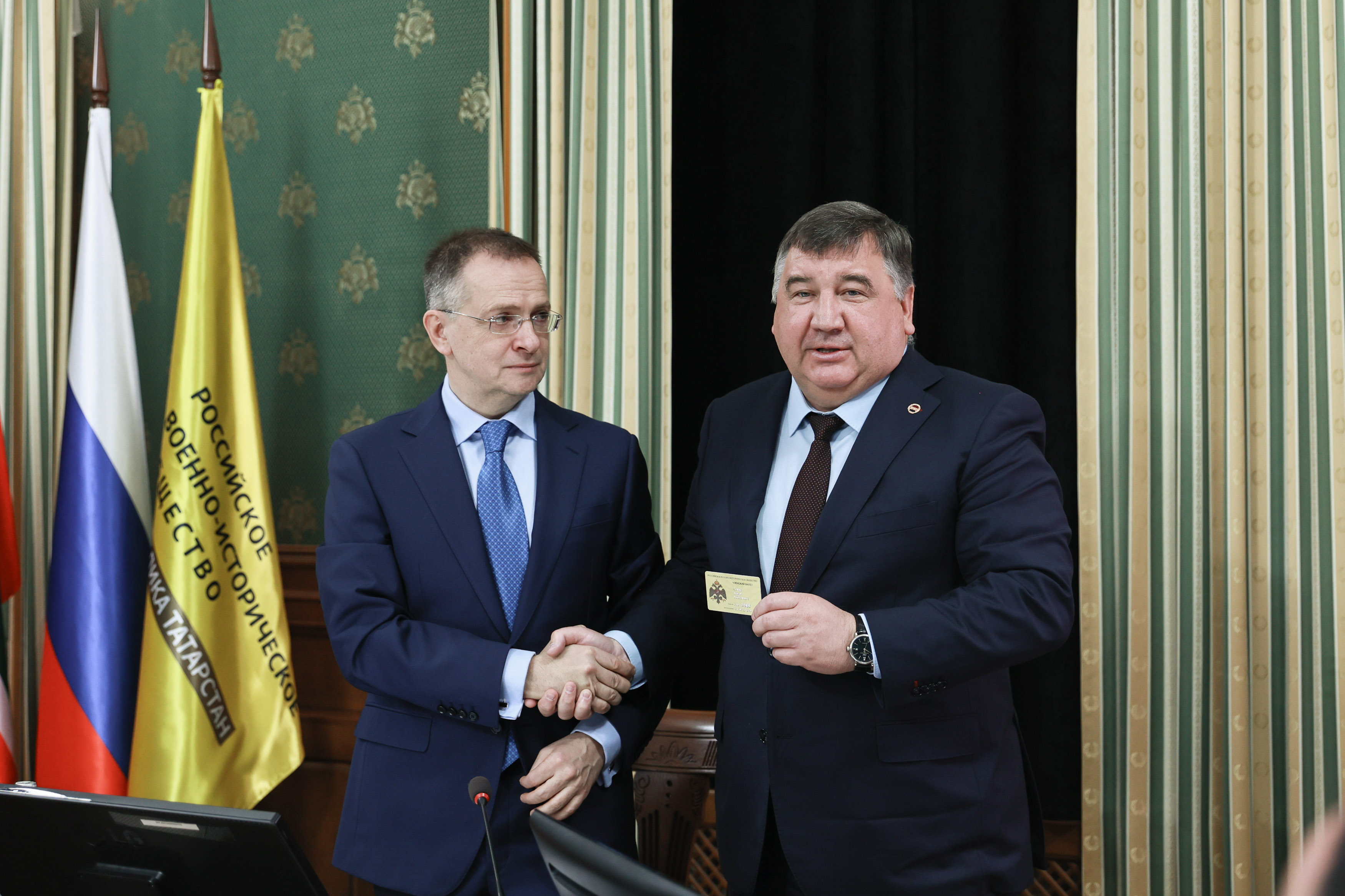 Владимир Мединский в свою очередь торжественно вручил руководителю вуза членский билет РВИО в РТ.