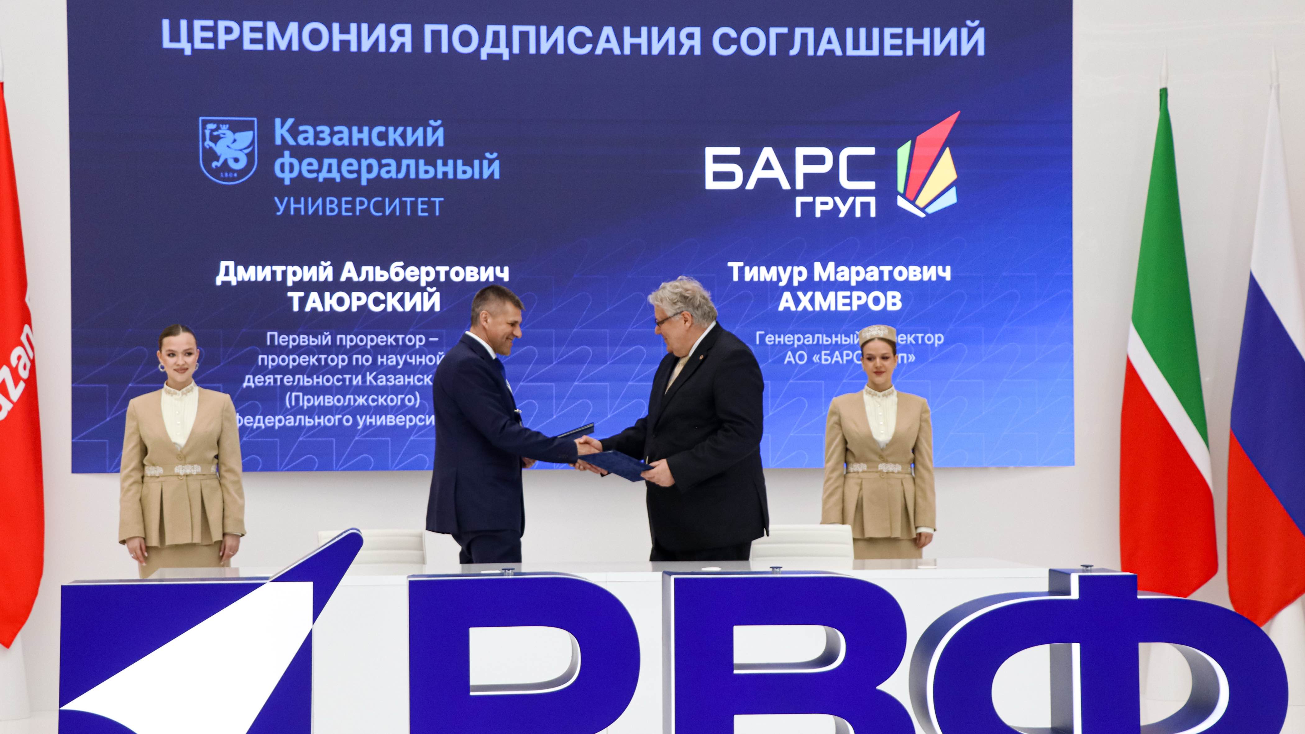 От лица Казанского федерального документ подписал первый проректор – проректор по научной деятельности КФУ Дмитрий Таюрский. Со стороны акционерного общества подпись поставил генеральный директор АО «БАРС Груп» Тимур Ахмеров.