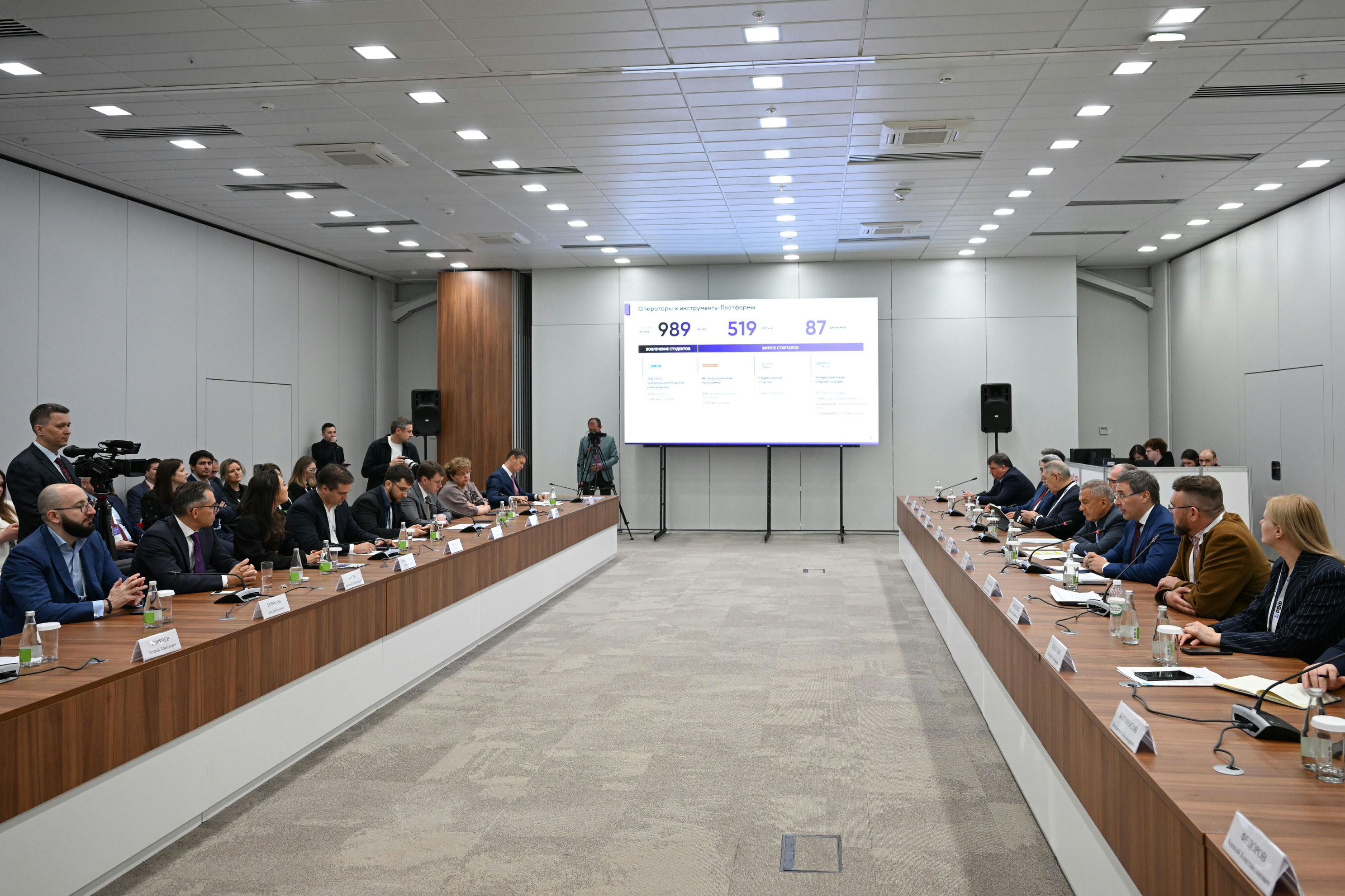 Встречу провели Рустам Минниханов и Валерий Фальков. В ней также приняли участие президент Академии наук Татарстана Рифкат Минниханов и директор Инвестиционно-венчурного фонда РТ Дамир Галиев.