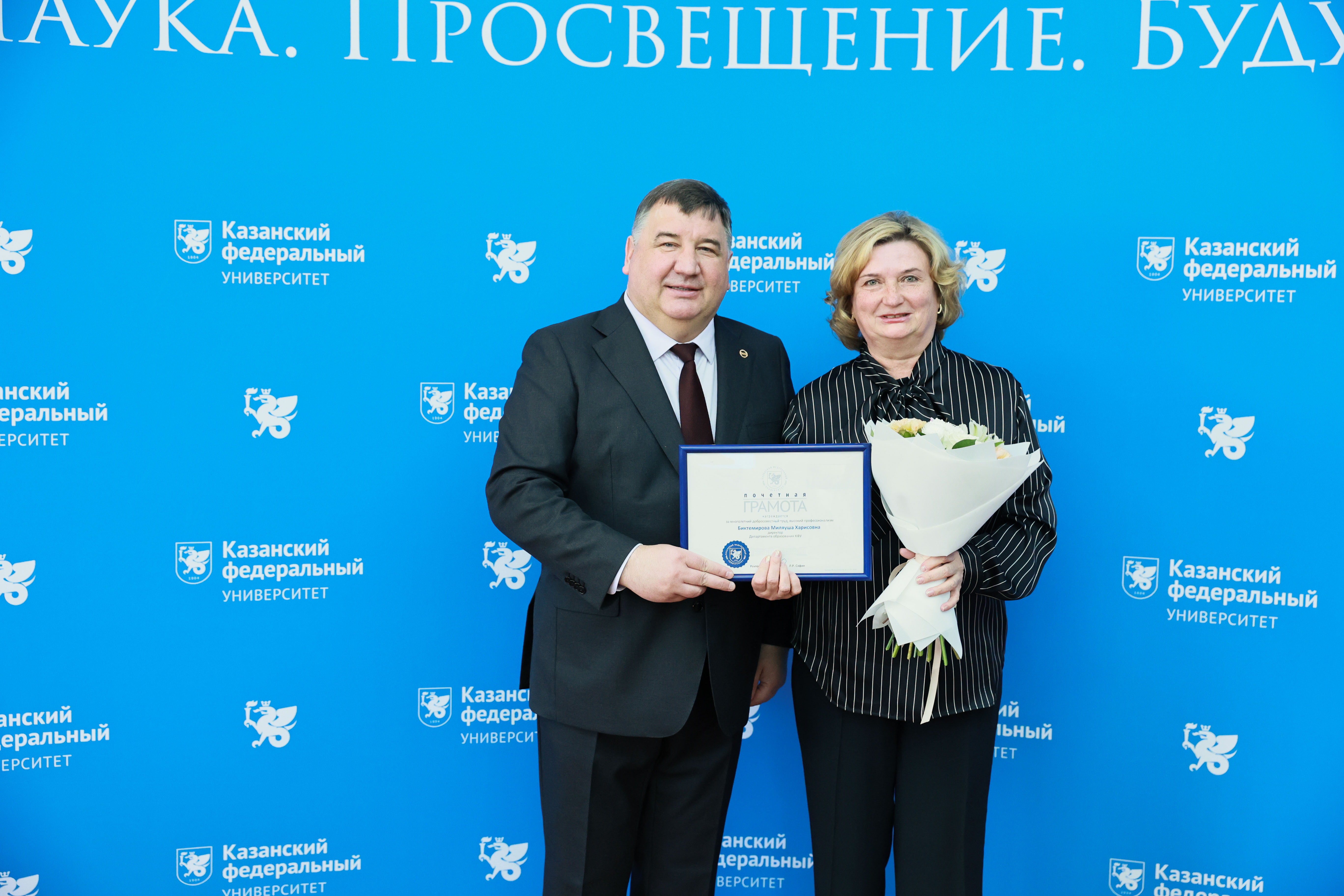 Перед началом заседания руководитель вуза традиционно вручил особо отличившимся сотрудникам ведомственные и правительственные награды РФ И РТ. Всего почетными грамотами, медалями и знаками отличия были награждены 19 человек.