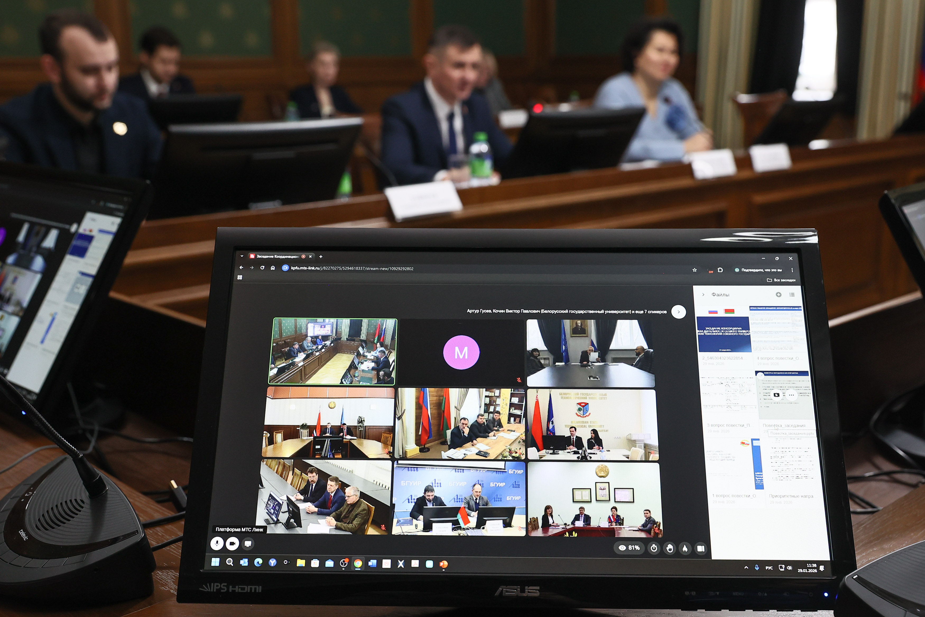Само мероприятие прошло в смешанном формате. Очно на заседании присутствовали представители Казанского университета и Казанского национального исследовательского технического университета им. А.Н. Туполева. В режиме ВКС к работе подключились эксперты Минобрнауки РФ, РТ и Республики Беларусь, Российский химико-технологический университет им. Д.И. Менделеева, а также представители белорусской высшей школы.