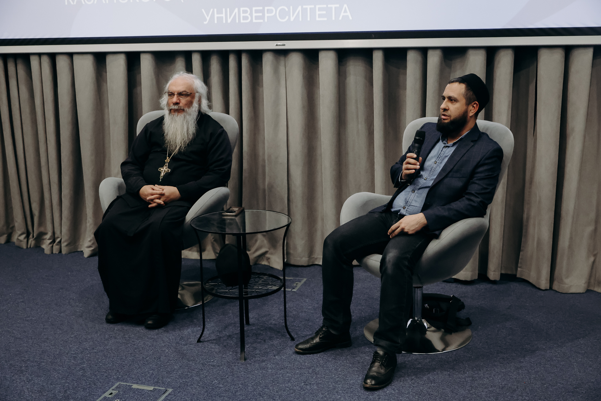 Спикерами на встрече стали настоятель Новоиерусалимского Архиерейского подворья г. Казани, доцент кафедры исламоведения Казанской духовной семинарии, председатель Епархиального отдела по работе с медицинскими учреждениями, духовник Свято-Никольского сестричества при соборе святого Николая иеромонах Роман (Модин), а также заместитель начальника Центра межрелигиозного диалога Болгарской исламской академии Рамис Фатхуллин.