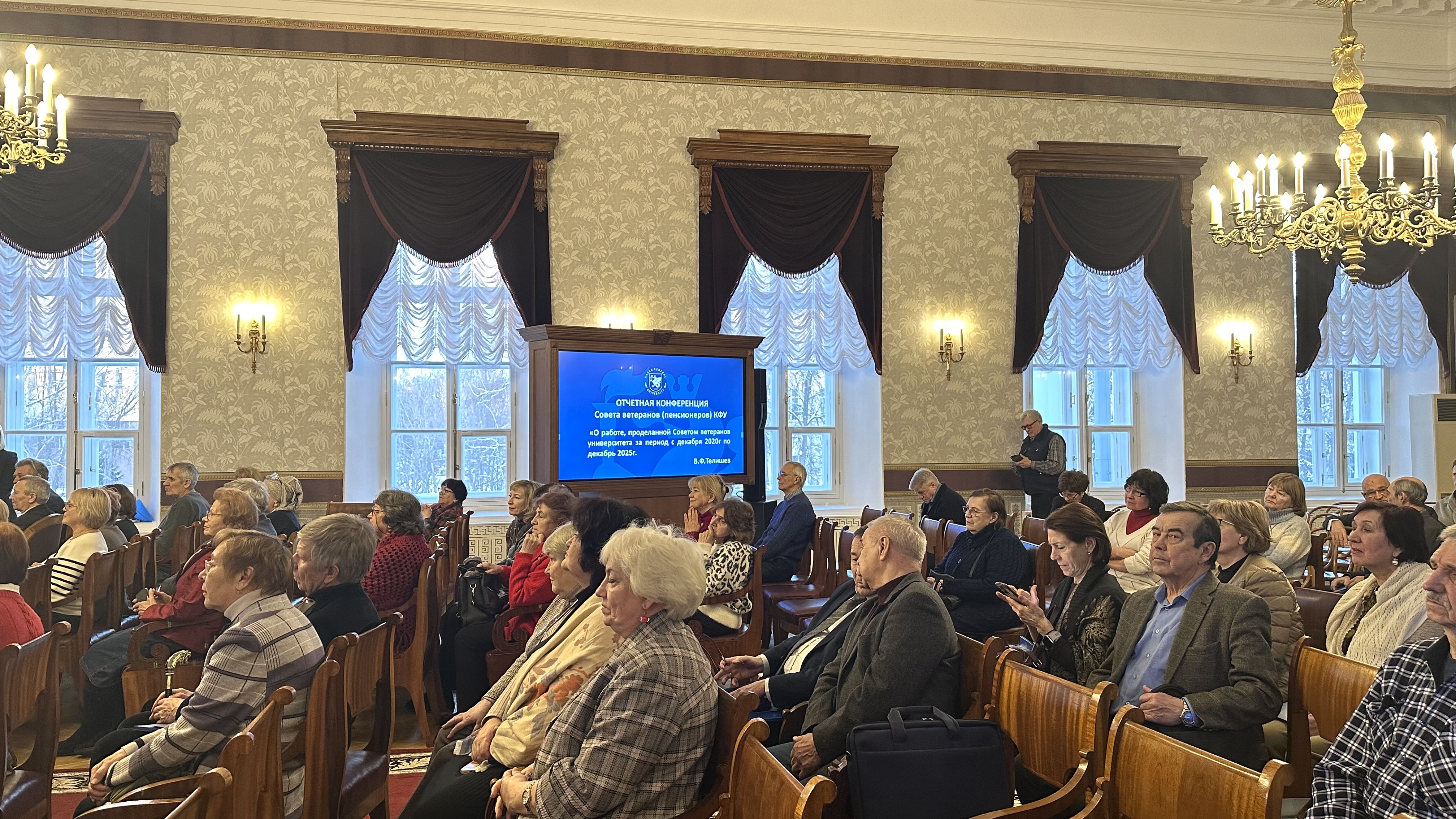 В Императорском зале Казанского федерального университета состоялась отчетно-выборная конференция Совета ветеранов КФУ. В повестку вошли представление итогов его работы в 2020–2025-х годах, а также выборы председателя и членов организации.