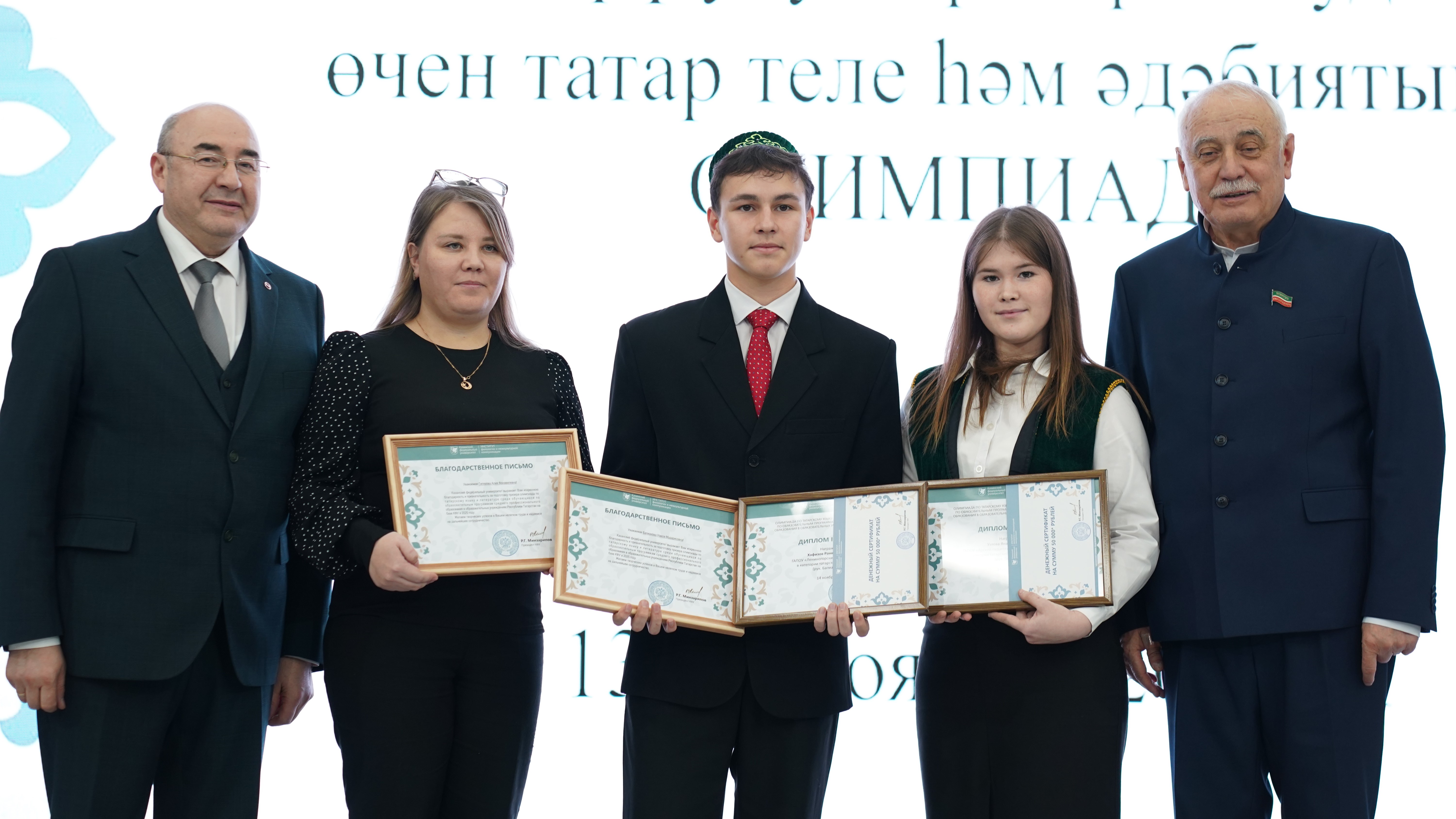 В Институте филологии и межкультурной коммуникации Казанского федерального университета прошло торжественное закрытие Олимпиады по татарскому языку и литературе для обучающихся по образовательным программам среднего профессионального образования (СПО) в Татарстане. Мероприятие состоялось при поддержке Комиссии при Раисе Республики Татарстан по вопросам сохранения, развития татарского языка и родных языков представителей народов, проживающих в РТ.