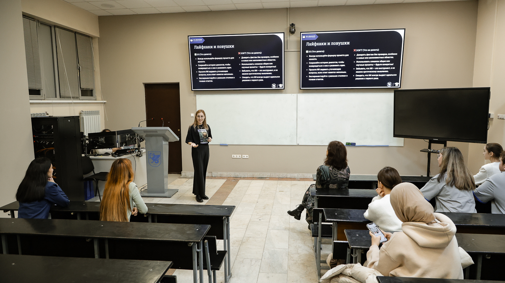 По мнению лектора, с искусственным интеллектом можно быстро находить и адаптировать обучающие материалы под свои потребности. Больше не нужно просеивать горы информации – ИИ сделает это сам, придав контенту нужную форму и ясность. В то же время Витвицкая обратила внимание на необходимость фактчекинга и проверки актуальности информации, полученной от искусственного интеллекта, особенно если речь идет о практически важных данных или быстро меняющихся областях.