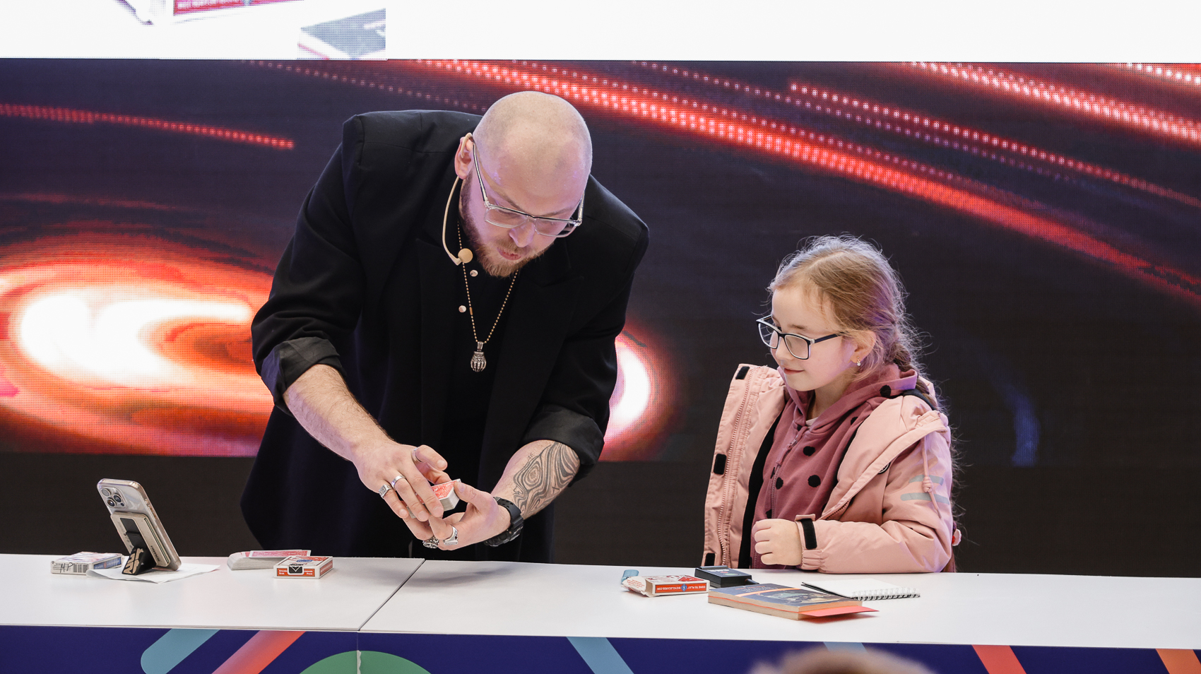 Внимание гостей приковал иллюзионист Московского оперного дома и владелец крупнейшего портала по обучению фокусам Фигасебе.ру Антон Карнаухов. Он представил поистине незабываемое шоу «Матемагия» – увлекательное выступление о математических фокусах, их алгоритмах и механизмах работы нашего внимания.