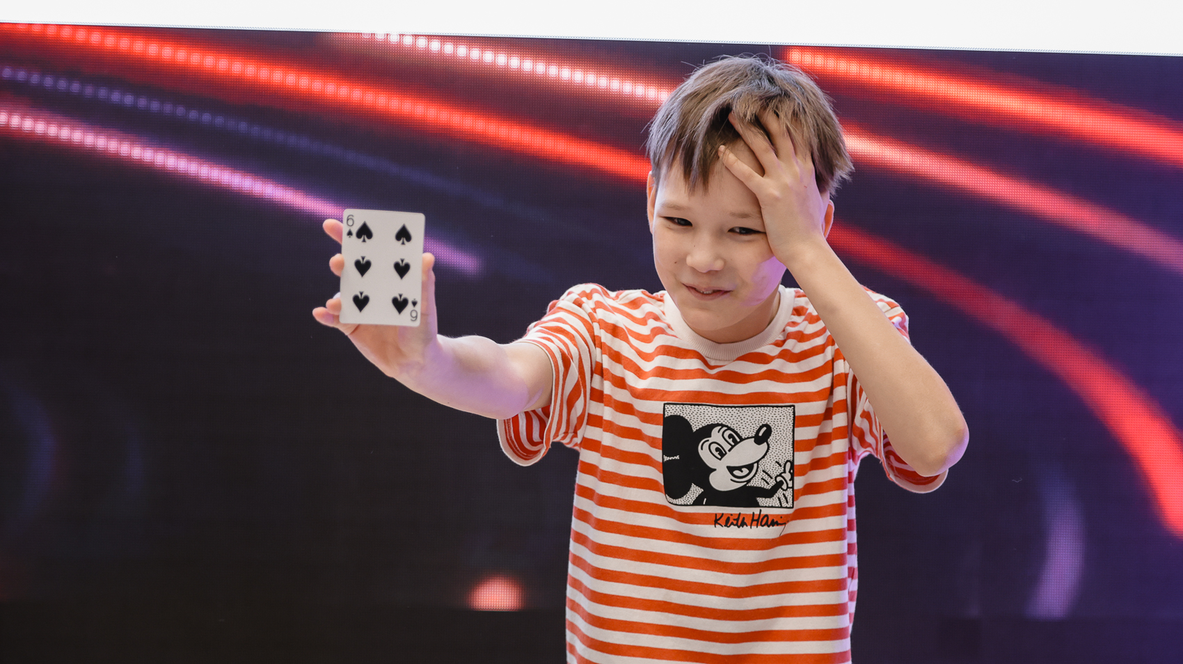 Иллюзионист, в частности, продемонстрировал классический карточный трюк, который не требовал ловкости рук и был основан на чистой математике. Так, зритель выбирал любую карту из 21, после трех раскладов по три стопки фокусник безошибочно находил нужную.