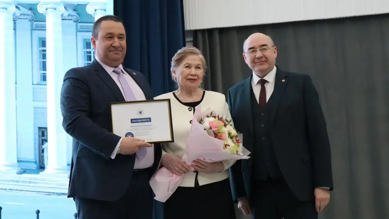 Глава Минобрнауки РТ И. Хадиуллин в поздравительной речи отметил, насколько педагогическая деятельность, с одной стороны, сложная, а, с другой, почетная. Затем министр вручил профессору благодарственное письмо и нагрудный знак «За сохранение и развитие языков, культур, традиций».